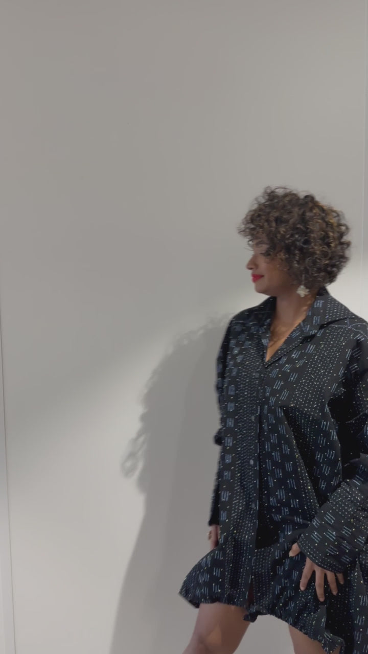 Robe chemise en wax satiné (coton texturé, toucher soyeux et lumineux)